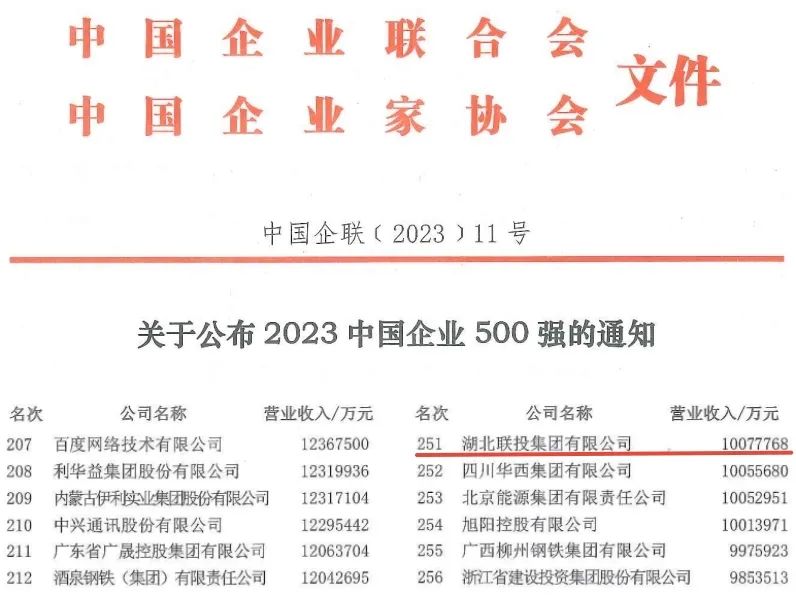 最新出爐的“2023中國企業(yè)500強”名單顯示,湖北聯(lián)投集團已從去年的354位,躍升至251位。跨步前進103位,湖北聯(lián)投的動力之源何在?經(jīng)濟下行壓力之下,湖北聯(lián)投如何擇高而立、往寬而拓、向深而耕?