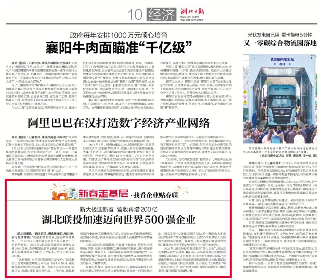 湖北日報:新大樓迎新春 營收再增200億 湖北聯(lián)投加速邁向世界500強企業(yè)